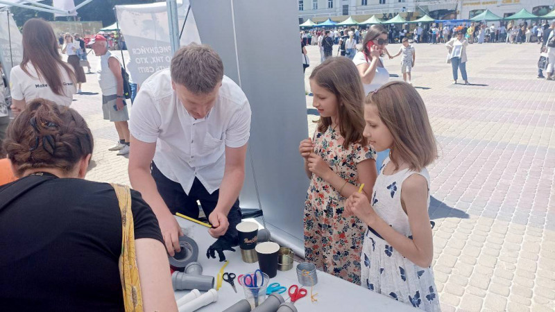 "Сьогодні показуємо дітям дві речі. Перше — це те, що не все очевидно. Допомагаємо дітям зробити собі дірку в руці. Це такий експеримент, коли одне око й інше змішують свої зображення і мозок взагалі не розуміє, що робить. А потім робимо музичні експерименти, показуємо акустику, але все це в ігровій формі".