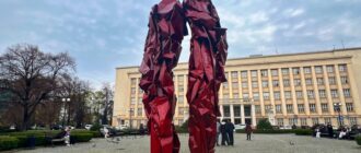 “Величезна рана всередині”: в Ужгороді представлять інсталяцію митця Михайла Деяка, що символізує збиральний образ війни За інформацією: Суспільне. Інталяція Михайла Деяка “Реконструкція подій” на площі Народній в Ужгороді. Мар’яна Новини Ужгорода