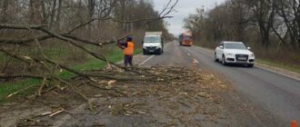 На Тернопільщині на узбіччя доріг та проїжджу частину вітер повалив дерева За інформацією: Суспільне Тернопіль. Наслідки негоди на Тернопільщині. Служба відновлення та розвитку інфраструктури у Новини Тернополя