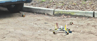 У центрі Сум знайшли дрон з вибухівкою За інформацією: Суспільне Суми. Дрон на дорозі в центрі Сум. Сумська обласна організація ТХЧУ Новини Сум