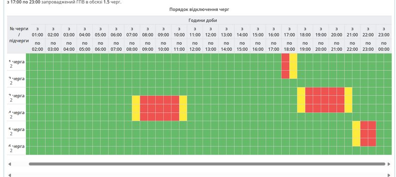 Згідно з інформацією, 23 жовтня на Полтавщині вимикатимуть по 1,5 черги споживачів. Графік відключень запровадять до 23:00. Причина запровадження заходів — наслідки атак РФ на об`єкти енергетики.