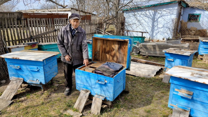 Житель Квітневого Володимир Шкіндер поруч із пасікою. Суспільне Миколаїв/Федір Бондар