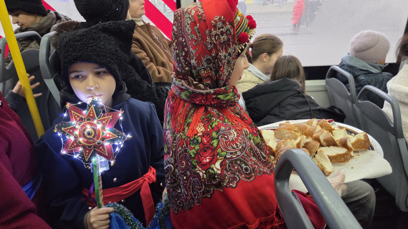 У Миколаєві 3 січня влаштували святковий маршрут тролейбуса з колядками. Вокальний ансамбль та театральний колектив Воскресенського палацу культури співали колядки та пригощали людей різдвяним короваєм вздовж тролейбусного маршруту № 2.
