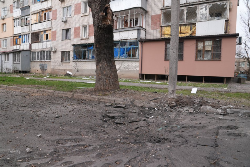 Місце влучання російського снаряда у Корабельному районі Херсона, 25 березня 2026 року. Суспільне Херсон/Олександр Корняков