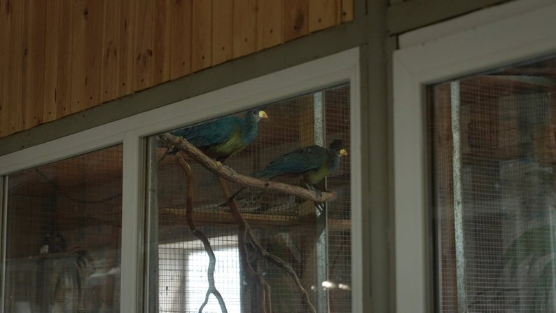 Птахи турако, яких привезли з Африки, до весни будуть жити у вольєрах, які розташовані у приміщенні екопарку. Суспільне Полтава