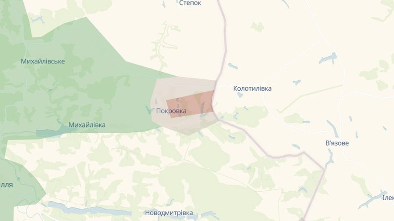 Село Покровка Краснопільської громади частково у "червоній" зоні на мапі DeepState. Аналітики оновили дані 23 лютого. В Угрупованні об'єднаних сил окупацію заперечили.
