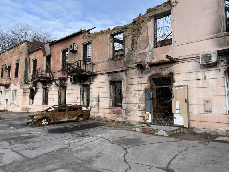 Будинок та автівка після пожежі, яку спричинив російський обстріл, Херсон. ДСНС Херсонщини