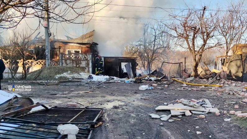 За данними Сумської МВА, внаслідок удару РФ у Сумах знищено 2 будинки.