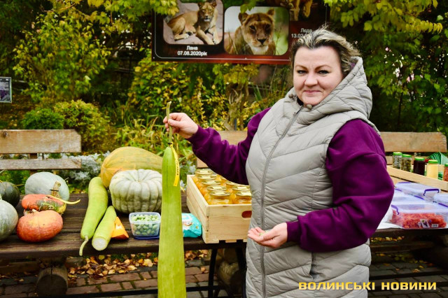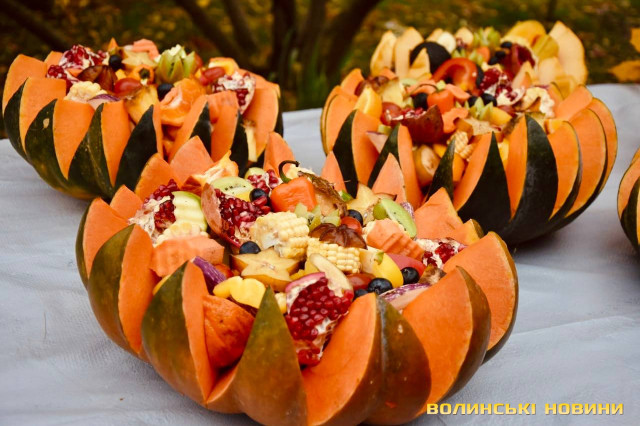 «Цьогоріч традиційно головний герой свята – це гарбуз. Присутні страви із гарбуза – борошно, хліб, цукати, цукерки, чай і королівська каша, зварена на вогні, а також частування різними смаколиками. Паралельно проводиться виставка гарбузів та фермерської продукції, майстеркласи, які теж пов’язані із гарбузами, показова годівля різних тварин і птахів зоопарку. Тематичні фотозони, де присутні багато-багато гарбузів, і найбільша з них у центрі. Фотозони вміщають близько шести тонн гарбузів, відвідувачі там можуть сфотографуватись, зарядитися позитивом і провести час з родиною. І я щиро вдячна усім тим, кого не злякала холодна погода і вони прийшли переналаштуватися й набратися нових сил», – розповіла Людмила Денисенко.