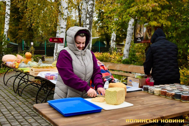 «Дуже багато страв можна приготувати, і це не лише каша. Здавалося б, ніби звичний для українців гарбуз, але скільки всього з нього можна зробити. Тут є, наприклад, цукерки, вони виготовлені на основі соняшникового ядра, заправлені медом і обсипані крихтою гарбузового насіння. Гарбуз поділяється на такі два основні сорти – крохмалисті і соковиті, з останніх можна зробити дуже смачні цукати. Також борошно, яким можна загущувати різні підливи, супи, додавати у хліб. Ще ми привезли з собою прес, саме за допомогою нього можна зробити корисну гарбузову олію», – зазначає Наталія Боярчук.