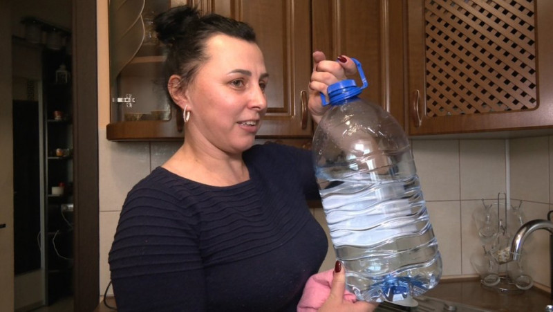 "Я принесла додому шість відер води, вийшло пів ванни. Запасаюся, бо звтра не знаємо, чи буде вода чи ні. Інколи, якщо вода і зявляється, то тече під малим напором. Тому я трохи там, а трохи тут набираю воду, щоб було чим дитину помити, а й посуд. Бо не знаємо, як буде далі з водою".