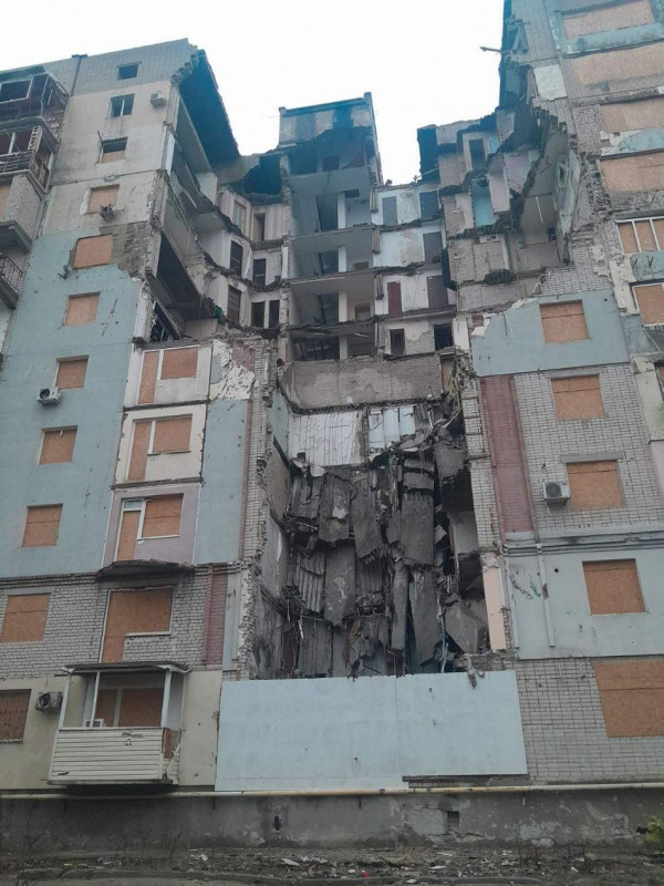 "Працівники їдуть туди закривати вікна чи двері лише тоді, коли є підтримка — захист від дронів. У деяких будинках вщент розбитий дах. Снаряди влетіли, пробили горище та квартиру. Таких у нас два під'їзди, дірки там страшенні. Ми їх, як могли, накрили дошками та тентами, щоб хоч не текло у хату. Газова труба ще була пошкоджена. Комунальники її полагодили. І зараз там досі живуть люди", — розповіла жінка.