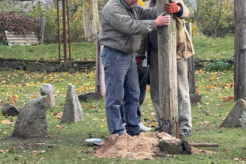 Встановлення хреста на території музею у Сарнах. Facebook Сарненський історико-етнографічний музей