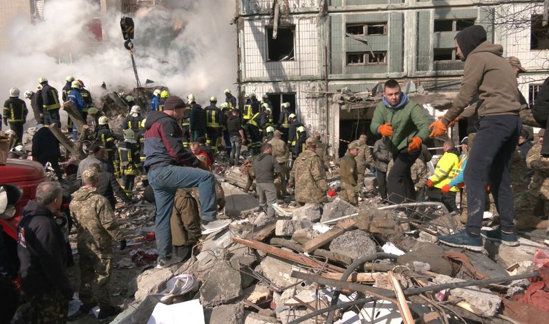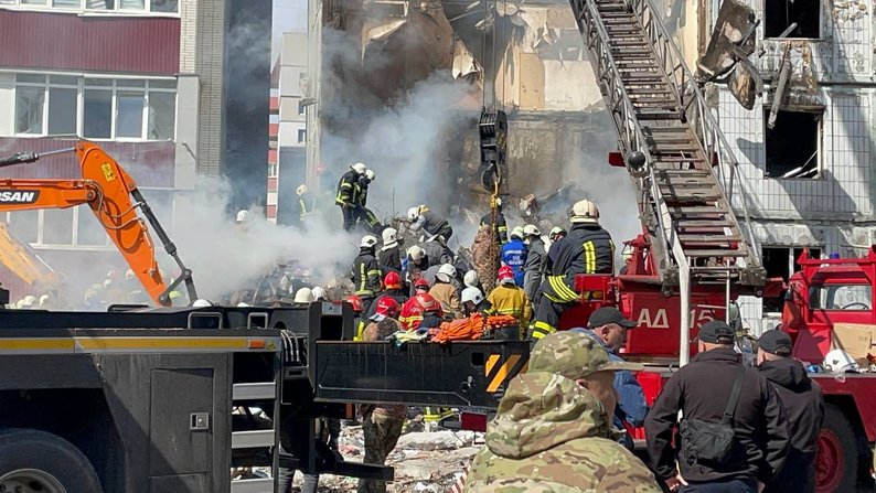 Унаслідок удару по житловому будинку загинули 23 людини, серед яких шестеро дітей. Частина багатоповерхівки була зруйнована, рятувальники розбирали завали. Журналісти Суспільного працювали на місці події та спілкувалися з очевидцями. Далі — фото з місця влучання: