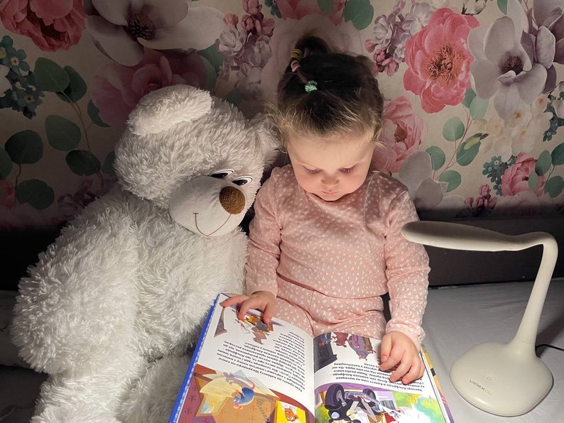 Дівчинка читає книгу під час відключення світла. Суспільне Черкаси