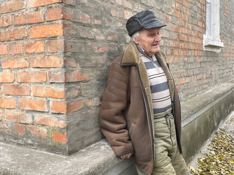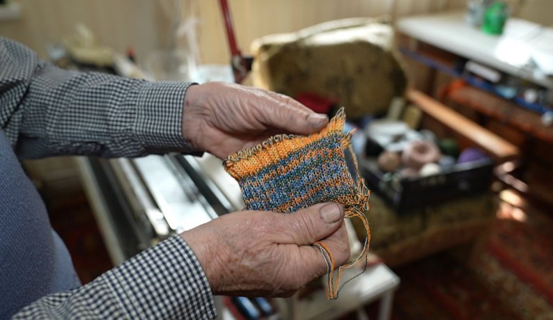 84-річний Петро Шкуро із Хацьок в’яже шкарпетки для військових, 2025 рік. Суспільне Черкаси