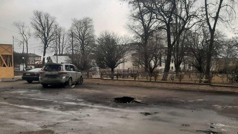 Умань після обстрілу 24 лютого 2022 року. Головне управління нацполіції у Черкаській області