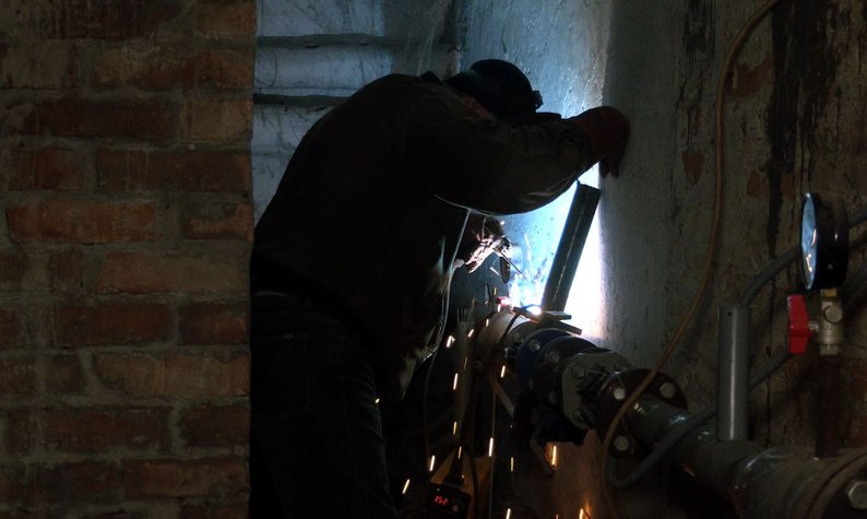 Добровольці-зварювальники виготовляють протитанкові їжаки на території однієї із управлінських компаній Черкас. Суспільне Черкаси