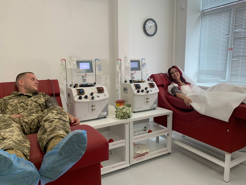 У Черкасах подружжя у день весілля прийшло до центру донорства, щоб не зраджувати спільній традиції та здати кров. Туди пара ходила й на побачення. Суспільне Черкаси/Марія Гаврилян