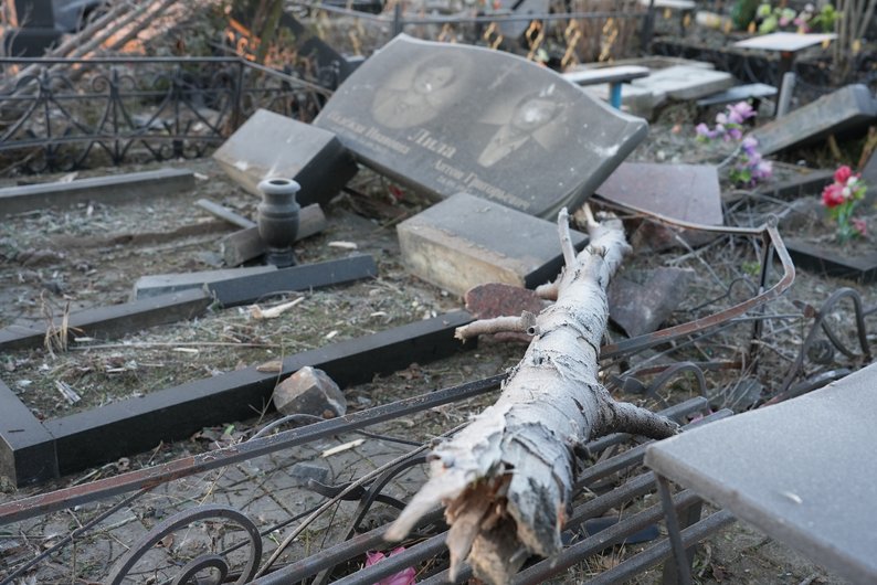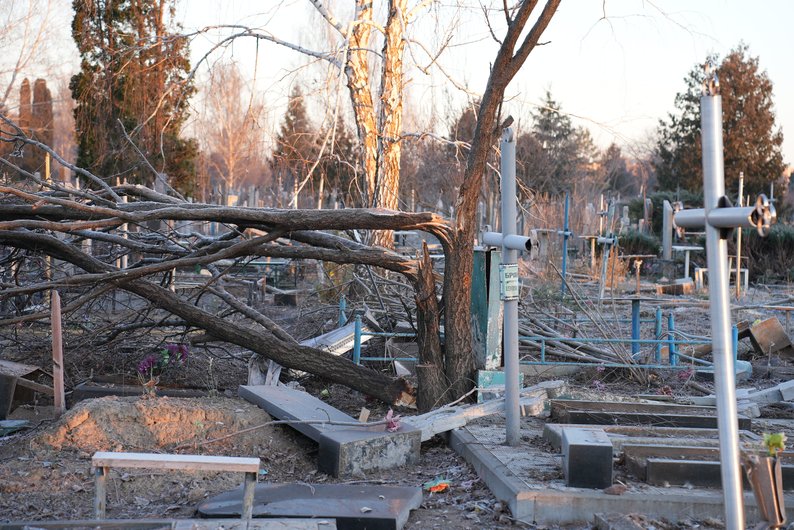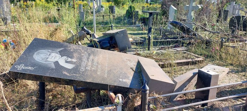 Жінка дивиться на понівечені пам’ятники. Суспільне Черкаси/Анастасія Столбова