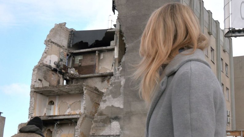 Черкащанка Леся Півень дивиться на зруйнований готель, у якому знаходилася її студія манікюру. Суспільне Черкаси