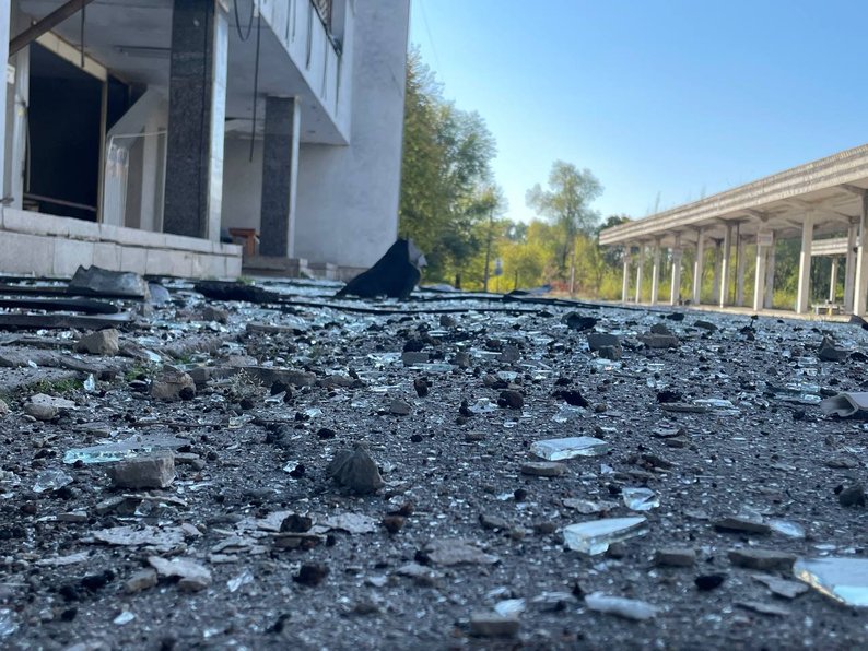 Наслідки в падіння уламків російської ракети у центрі Черкас. Суспільне Черкаси / Анна Іщенко, падіння уламків ракети в центрі Черкас, 21 вересня 2023 рік