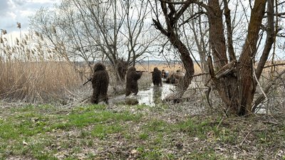 Підрозділ спішується з човна та, прикриваючи одне одного, рухається до умовної висоти. На відміну від бойових умов, в ході навчань є час на відпрацювання навичок, говорить шкіпер 40-ї бригади Олег.