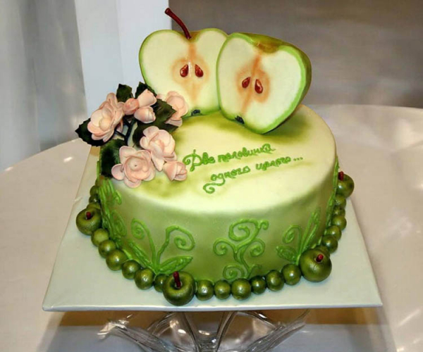 Його яблучний торт своїм кольором нагадує смачний фрукт. Головний декор ласощів — дві половинки цього апетитного плоду.
