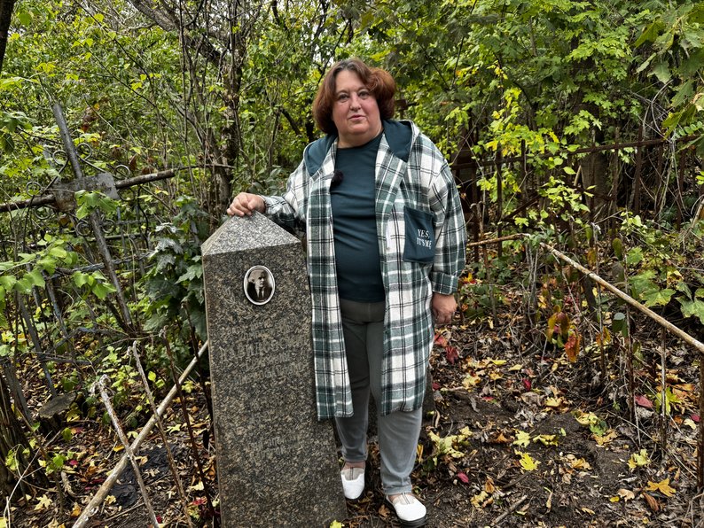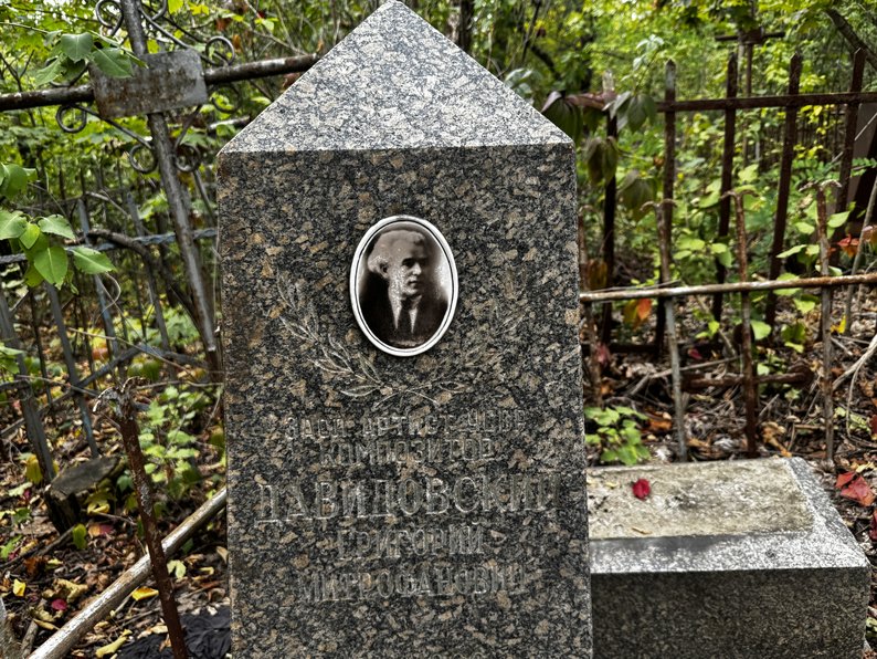 Наукова співробітниця Полтавського краєзнавчого музею Світлана Капко біля пам’ятника на могилі композитора Григорія Давидовського. Суспільне Полтава"Оскільки пам'ятник лежав лицем вниз, не видно було напису, а ще й на фотографії, на тій, що в мене була, чомусь було написано, що він із рожевої гранітної крихти зроблений. То засумнівалися. І подивилися, що дійсно фотографія Давидовського і так, навіть підпис, все повністю збереглося. Звичайно, було дуже воно брудне, замазане, але ми його наскільки змогли відмили", — пояснила наукова співробітниця Полтавського краєзнавчого музею.
