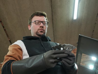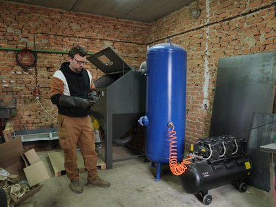 "Зараз, коли у нас є своя піскоструминна камера, процес дуже сильно скоротилися. Тобто, це все діло дуже сильно оптимізувало.Те, що зараз зварюється на лазері, от перед тим, як його варити, для того, щоб шов був якісний, його треба обробити тут піскоструминним апаратом", — продовжив розробник проєкту "Куратор".