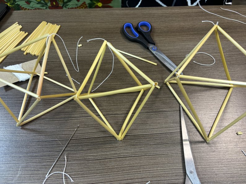 За її словами, для виготовлення павука необхідно 12 рівних соломинок, нитка та циганська голка. Техніка створення умовно позначається цифрами 3–2–2–2–1–1–1. Спершу на голку нанизують три соломинки, зав’язують вузликом і формують трикутник. Далі тричі додають по дві соломинки, протягуючи їх через кути виробу. Фінальні акценти — по одній соломинці — завершують геометричну фігуру.