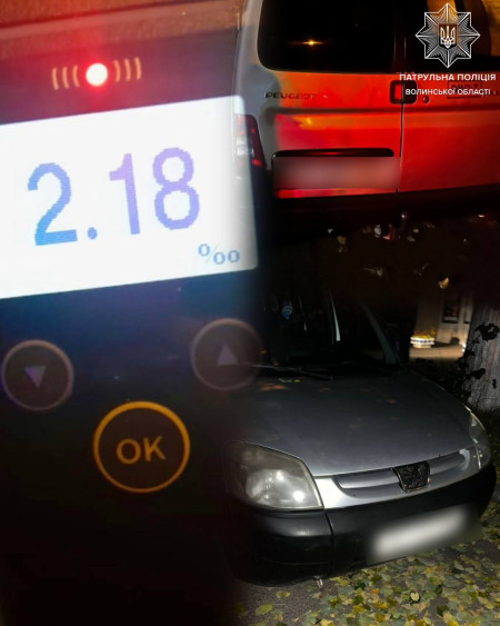 Керманич пройшов огляд на визначення стану сп’яніння за допомогою приладу Драгер. Результат — 2,18 проміле, що в 11 разів перевищує допустимий показник.