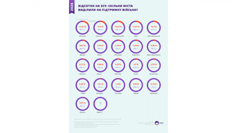 Зазначається, що повна запланована сума на 2025 рік невідома, оскільки в частині соціального захисту військовослужбовців і членів їхніх сімей відповідь міської ради на запит містила лише спрямований обсяг коштів — 236 мільйонів гривень.