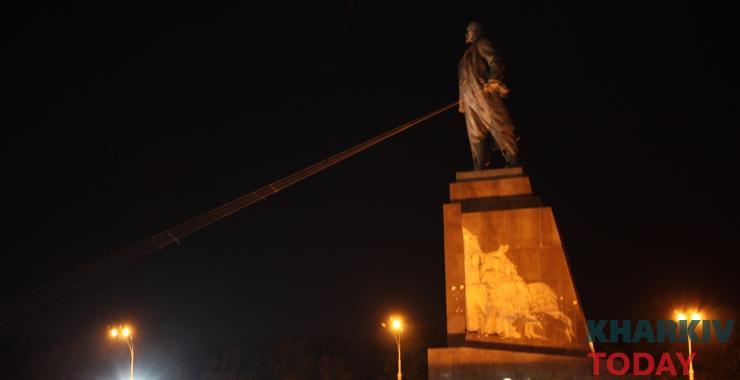 Не стало Леніна 28 вересня 2014 року. Увечері група молодих людей із прапорами “Правого сектору” та “Айдара” підпиляли монументу ноги болгаркою, зачепили тросом та повалили. Пам’ятник виявився порожнім та легким, тому з метро нічого не трапилося. Його уламки розтягли на сувеніри, тулуб вивезли у невідомому напрямку.