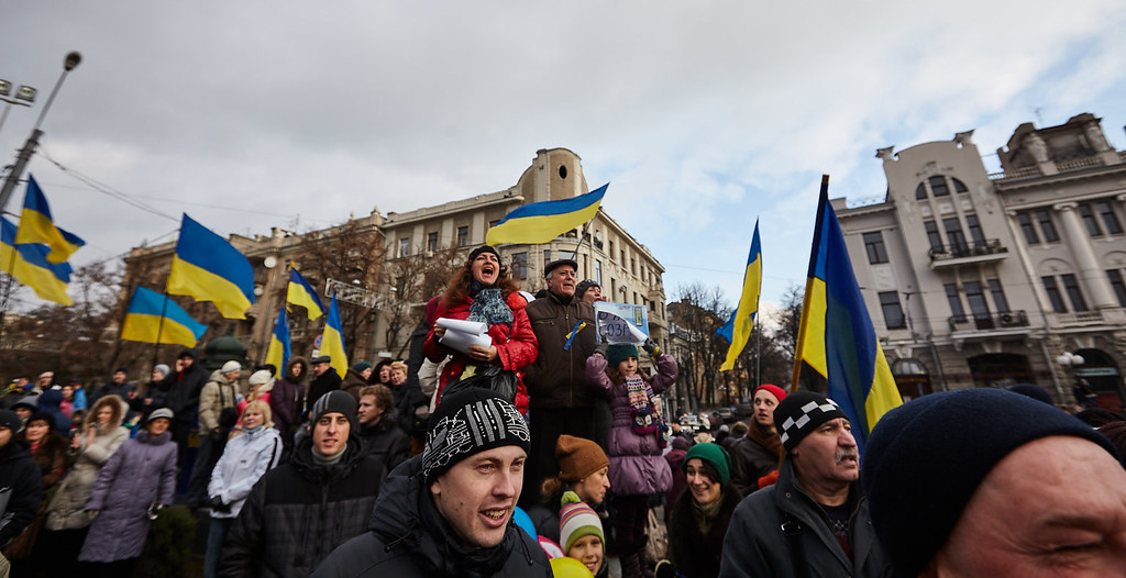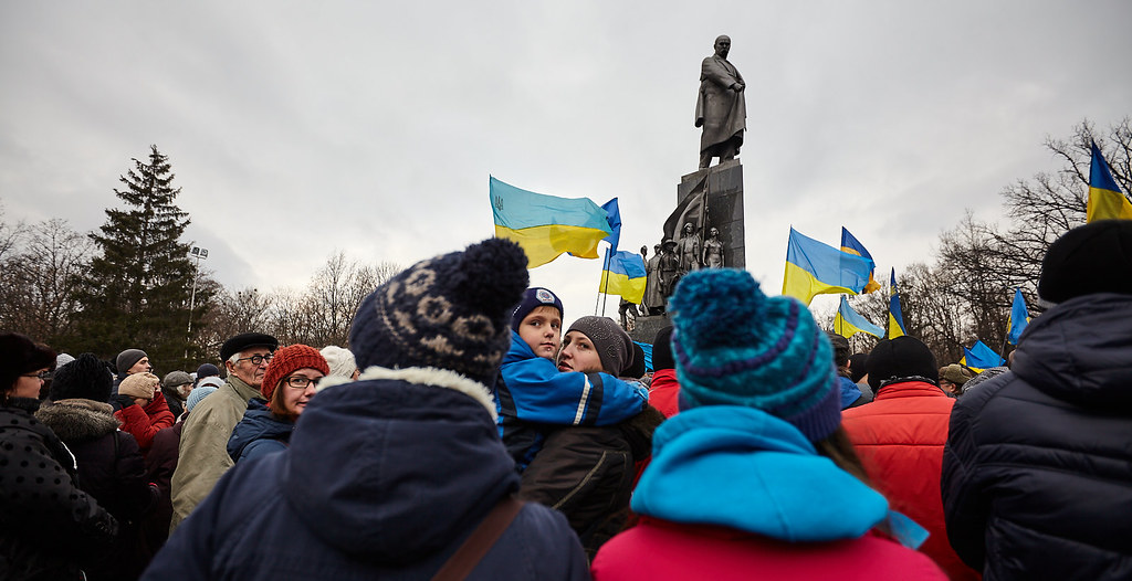 До Революції Гідностіа українські прапори у Харкові висіли хіба що на будинках офіційних установ, час від часу з ними з’являлися на стадіоні футбольні фанати. З осені 2013 року Харків забарвився у жовто-синій колір. Прапори приносили на віче біля Кобзаря, вивішували з балконів, жовтим та синім кольором розмальовували мости, стовпи та стіни.