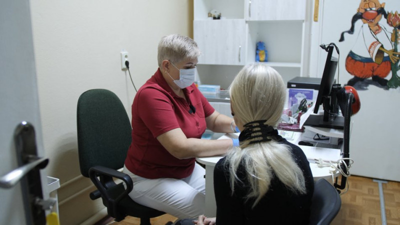 Лікарка — отоларингологиня Валентина Христюк спілкується з пацієнткою.
