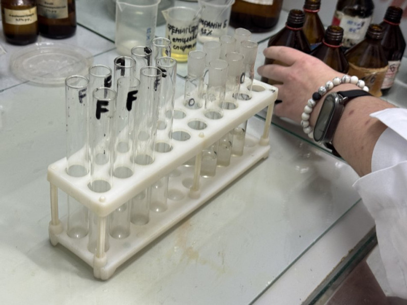 Пробірки та реактиви, за якими вимірюють якість повітря у Херсоні, вересень 2025 року. Суспільне Херсон