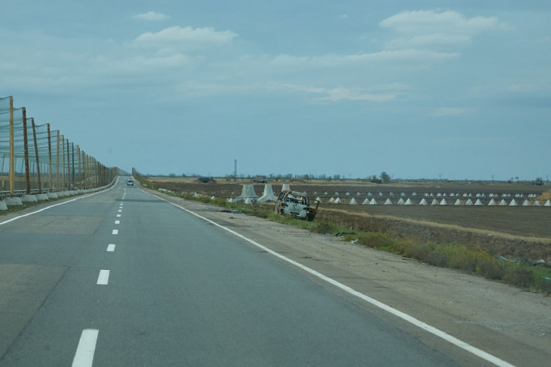 Траса М14 до Херсона, яка повністю прострілюється російськими військами, жовтень 2025 року. Суспільне Херсон