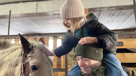Лучанин Веніамін Файчук служив прикордонником понад 20 років. У зону бойових дій вперше потрапив 2014-го, за час повномасштабної війни на Донеччині отримав поранення. На іпотерапію 41-річний ветеран війни прийшов з семирічною донькою Адріаною.