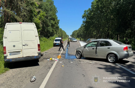 Під час обгону попутньої автівки чоловік виїхав на зустрічну смугу, де зіткнувся з Chevrolet Aveo. Внаслідок ДТП водійка останньої машини отримала переломи носа і руки. Її дитина зазнала незначних ушкоджень.