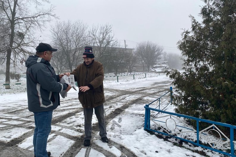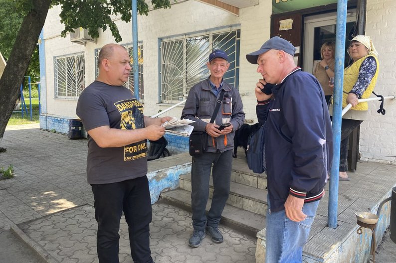 Олексій Пасюга привіз газету “Ворскла” у Велику Писарівку, травень 2025 року. Олексій Пасюга