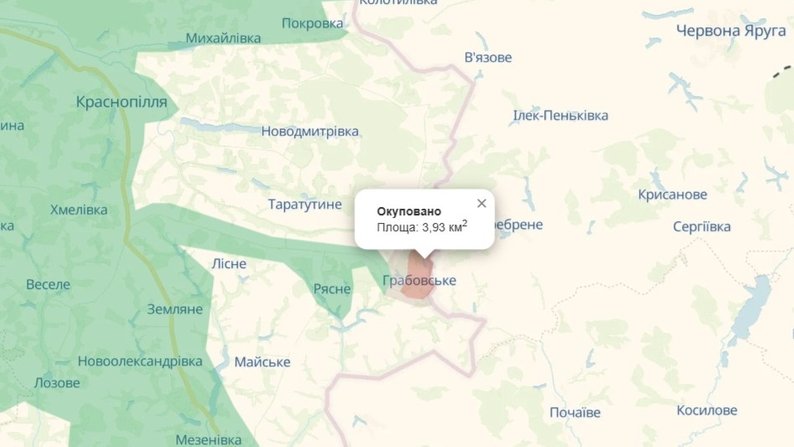 Інформація про окупацію 3,93 км2 у Грабовському з'явилась на мапі проєкту 23 грудня.