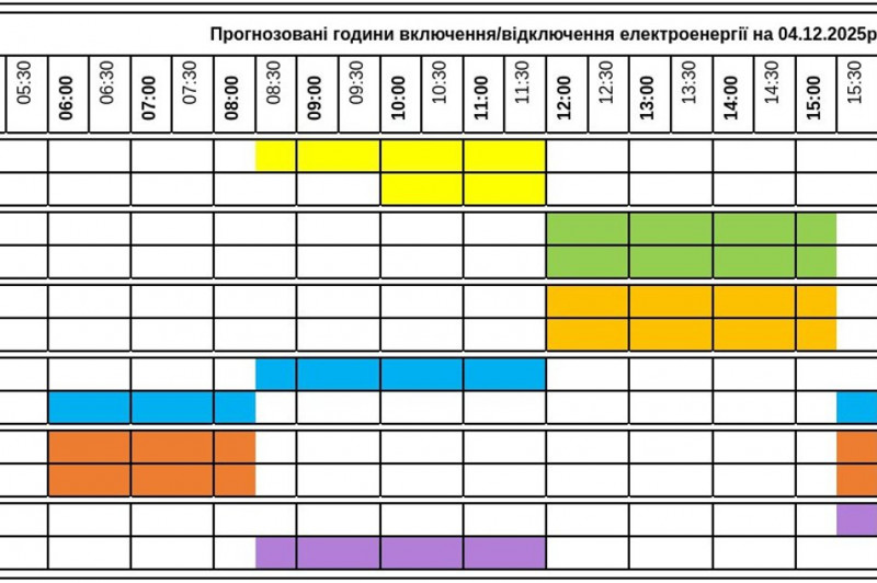 Графік відключень електроенергії на 04.12. Закарпаттяобленерго