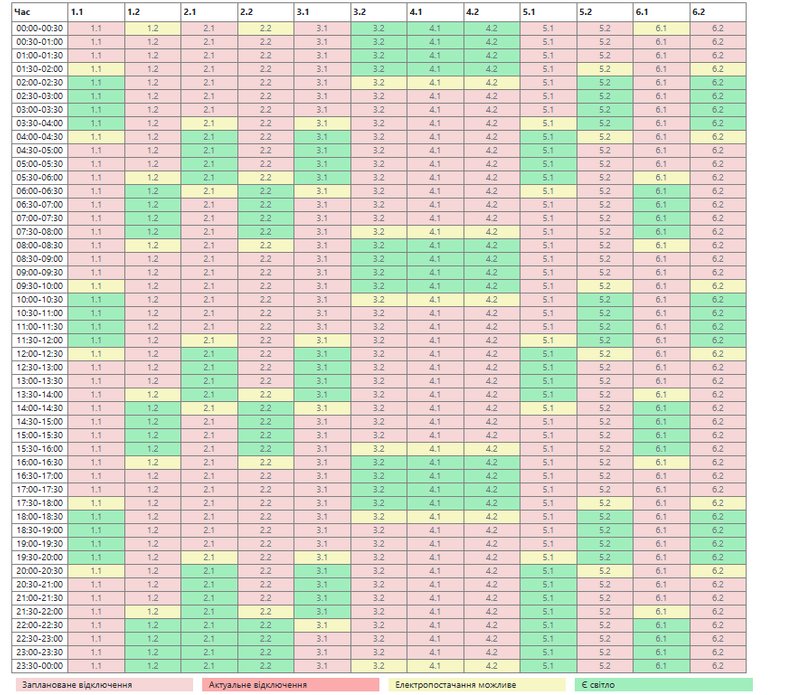 Попередньо, за підчергами світло вимикатимуть наступним чином: