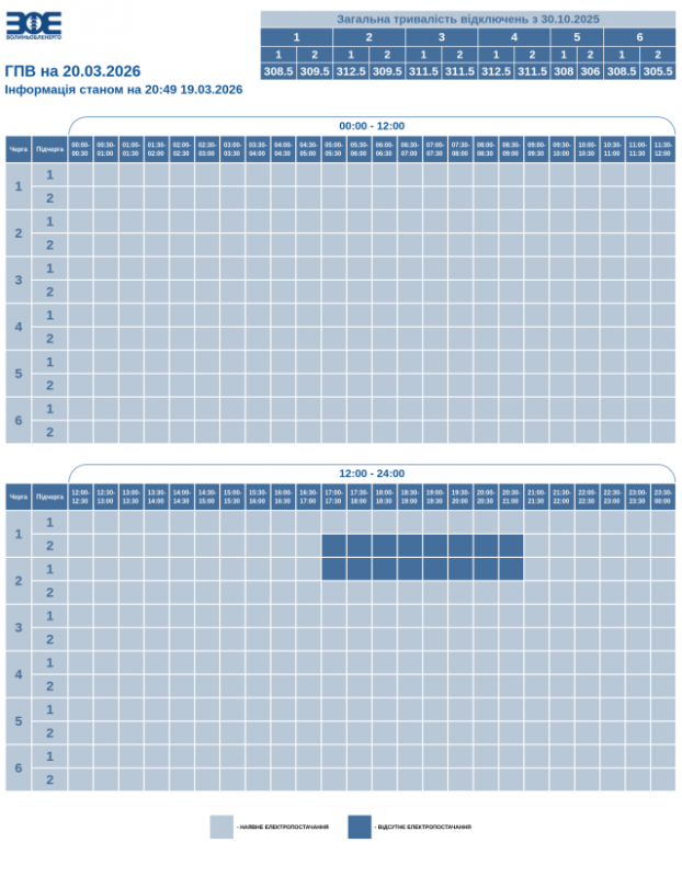 Графіки погодинного вимкнення діятимуть у такому обсязі: