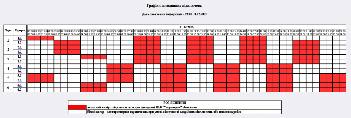 з 00:00 до 24:00 – графіки погодинних відключень (ГПВ)