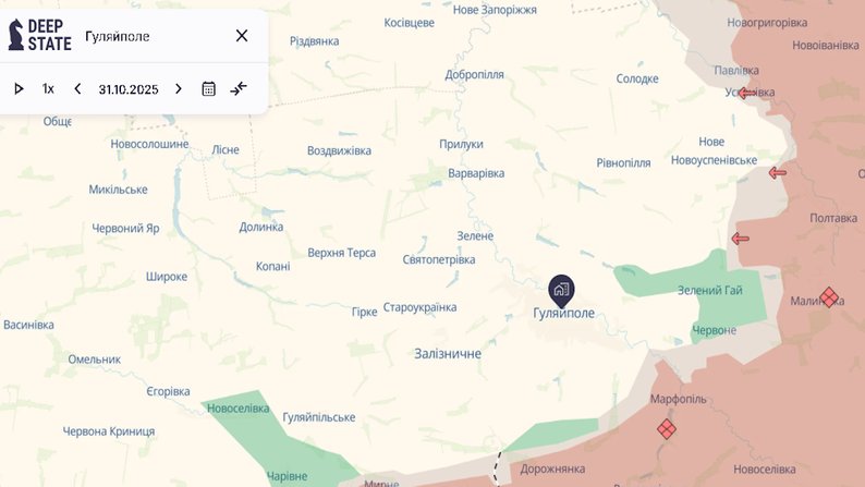 Карта бойових дій у напрямку Гуляйполя, 31 жовтня 2025 рік. DeepStateMap