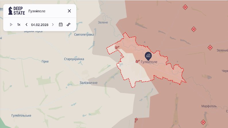 Карта бойових дій, Запорізька область, 4 лютого 2026. DeepStateMap