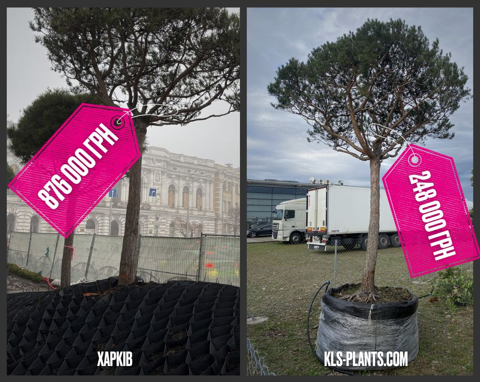 Але на сайті компанії “Кузнецов ландшафтна студія” найдорожча звичайна сосна “Пінія” коштує 247 800 грн. Причому ці сосни дуже схожі на висаджені біля “Градусника” дерева.