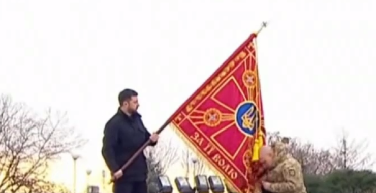 Також відзначили бійців 225-го окремого штурмового полку: командир полку, Герой України, майор ЗСУ Олег Ширяєв отримав від Президента бойовий прапор полку.